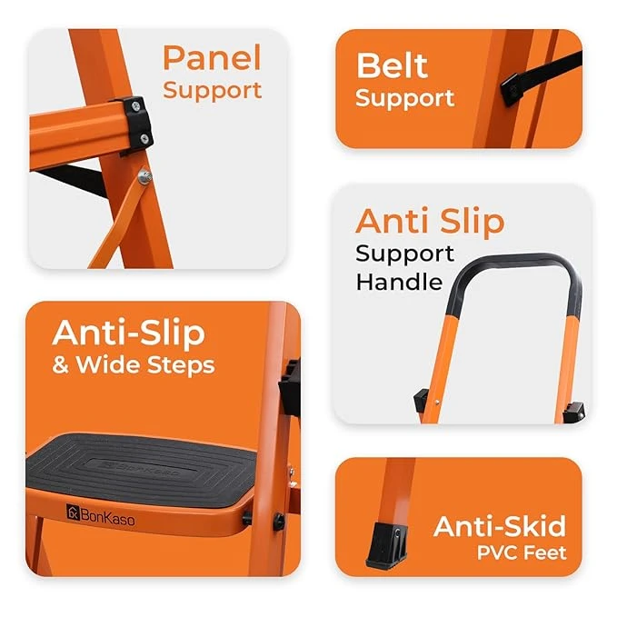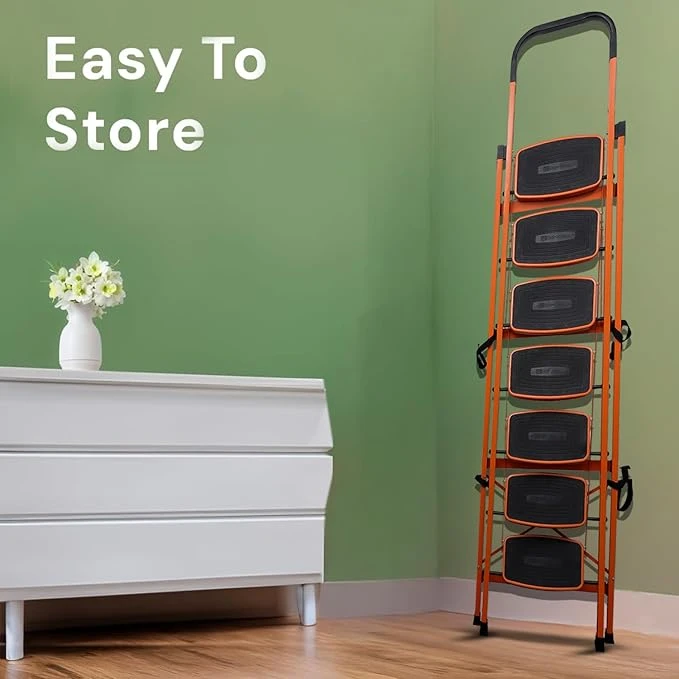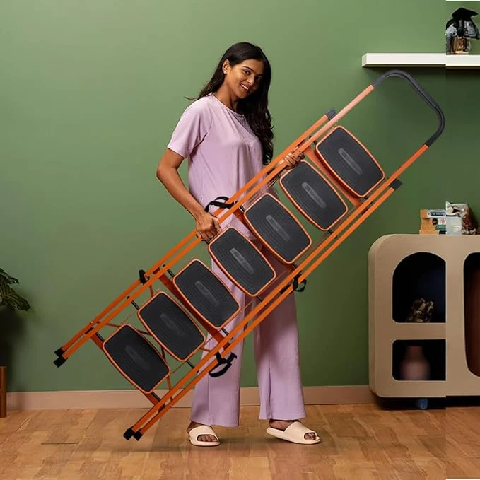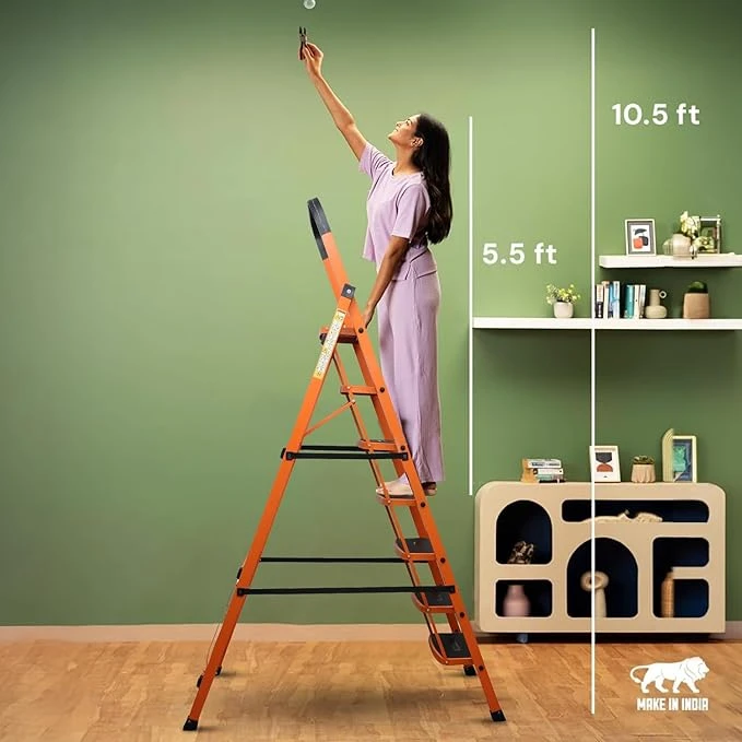 This lightweight ladder is easy to carry, fold, and store, making it ideal for both indoor and outdoor use. Its sturdy rectangular column design enhances stability and durability, ensuring balance during heavy-duty tasks. With a weight capacity of 150kg and tested for 10,000 cycles, it is built for long-lasting performance. Rust-resistant for up to two years, it offers enhanced strength and durability. The three-point locking system ensures maximum safety and stability, allowing independent use with confidence.