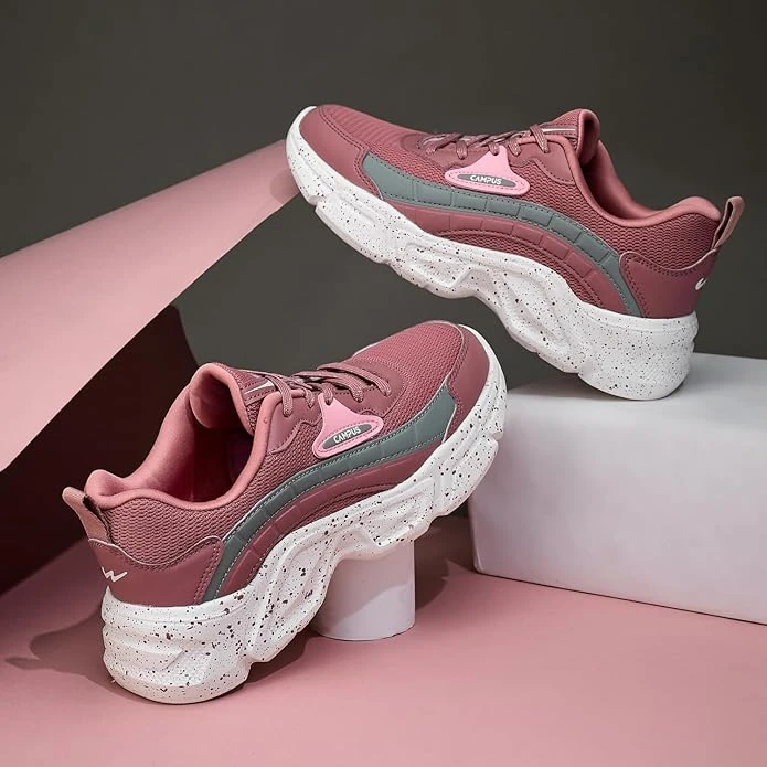 Your new style code has arrived! Step into a world of cool and comfort with the Campus CODY Women's Sneakers in a sharp black and light peach combo. The upper is crafted from breathable mesh with sleek PVC accents, giving you a dynamic look that's ready for anything. Glide through your day on the chunky, yet light EVA sole, while the combined power of our Memory Insole and PILLOFOAM technology offers a cushioning dream for your feet. The insole adapts to you, and the PilloFoam provides pillowy-soft comfort with every step. These are the perfect sneakers for urban adventures and effortless style.