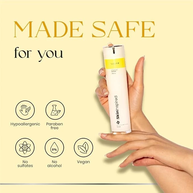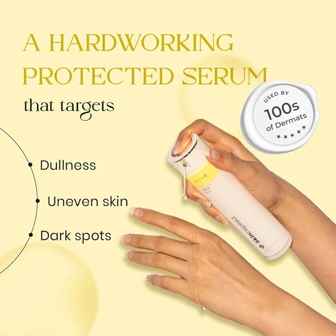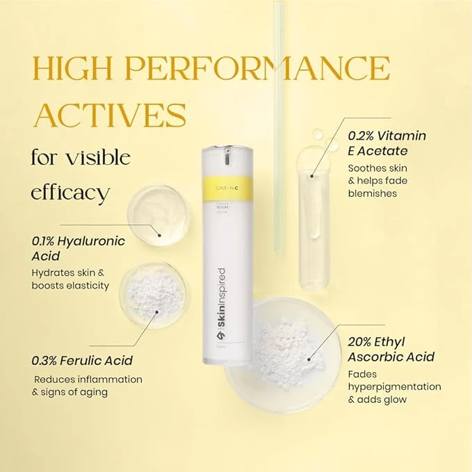 SKIN BRIGHTENING: Elevate your skin's radiance with our vitamin C serum, featuring a potent 20% Ethyl Ascorbic Acid. This vitamin C derivative reduces hyperpigmentation, combats visible signs of aging like fine lines and wrinkles, and provides a robust antioxidant defense. The inclusion of Hyaluronic Acid ensures deep hydration, resulting in a plump and radiant complexion.