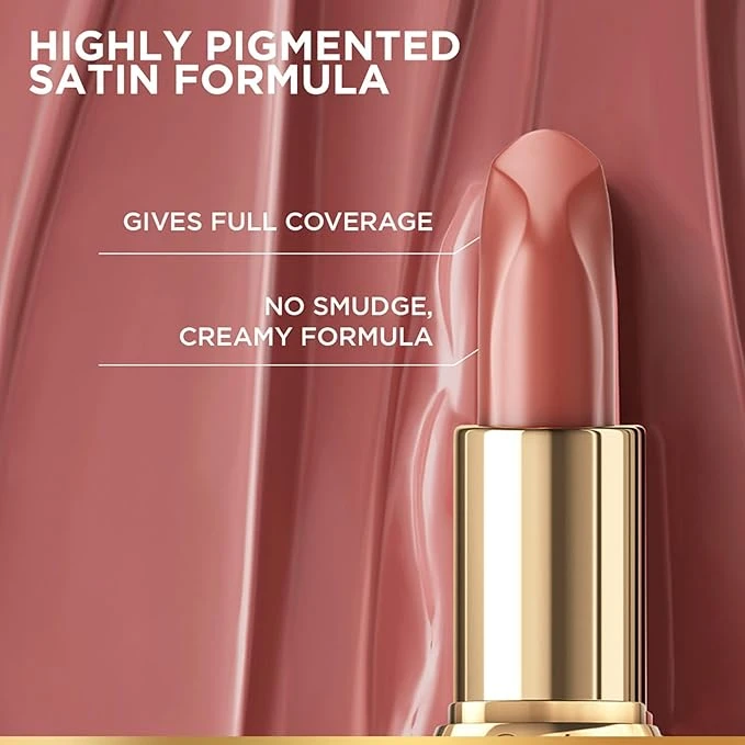 Dress your lips in the must-have, iconic Color Riche Lipstick from L’Oréal Paris. Rich, pure colour pigments with a luxurious satin finish. The ultra-creamy formula, enriched with nourishing Omega 3 and Vitamin E, leaves lips feeling soft, smooth and hydrated. Discover the lipstick collection that includes the hottest shades for every occasion, from everyday nudes, statement plums to perfect pinks. Formulated with 75% caring ingredients, one coat provides the lips with gorgeous satin color that does not smudge or feather.