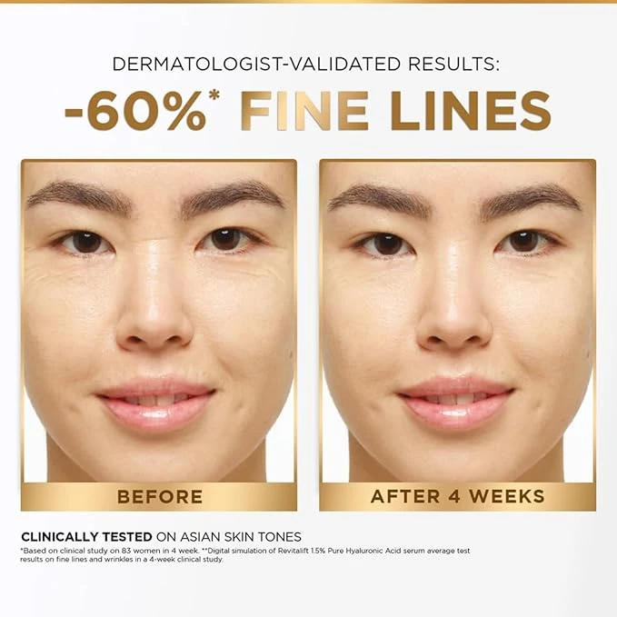 L'Oreal Paris Revitalift Serum, Hydrating and Plumping, Fast Efficacy Formula, Replumps Skin in 1H, Reduces Fine Lines, With 1.5% Micro-Epidermic Hyaluronic Acid, Validated by Dermatologists, 15ml